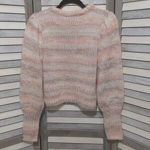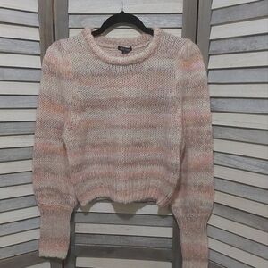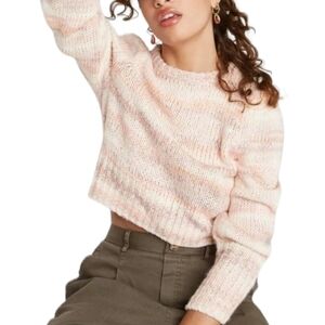 Crewneck sweater features a space-dye finish for colorful appeal. Long sleeves make for comfy wear with a cuffed design. Shorter length hits above the hips, finished with 100percent acrylic for softness.
