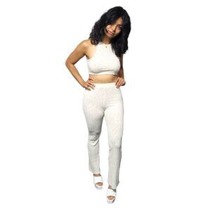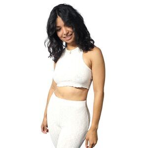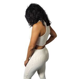 Crewneck cropped tank top ribbed knit Cotton blend Oatmeal AGRADE r 2 PIECE