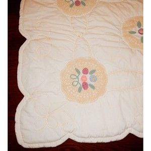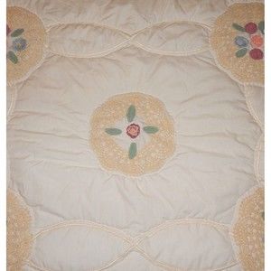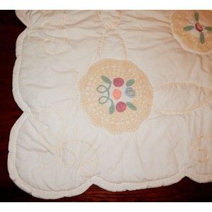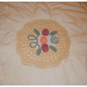 Crib Toddler Bed Comforter Cream Crocheted Roses Medallion Scalloped Edge