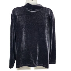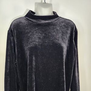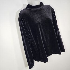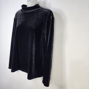 Cricket Lane Top Womens Large Soft Velvet Mock Neck Solid Black Long Sleeve