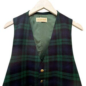 Cricketeer Mens Vest M/L Navy Green Plaid Preppy Scottish Tartan Wool