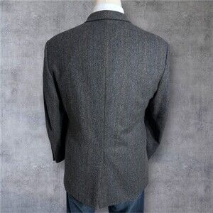 Cricketeer Vintage Mens Gray Tweed Blazer 44S Wool Herringbone Sport Coat Jacket