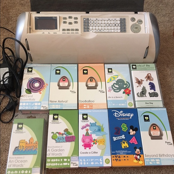 Cricut cutting machine in great working condition! Perfect for those that love crafting, card making, and teachers!!! 10 cartridges (ranging between $15-$49.99 on Amazon) with one still in original wrapper and all others in excellent conditions and only used a handful of times! Open to offers! Great deal for it all!!!