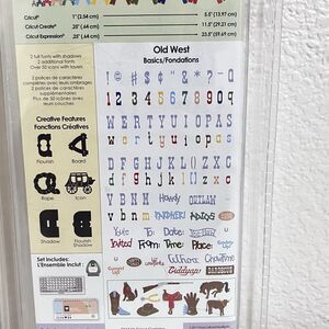 Cricut Font Cartridge Old West ABC Cowgirl UP! Cowboy Western New Sealed 291549. Western, cowgirl and cowboy theme. New, in the original, sealed packaging, never opened or used.
