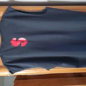 Crime pays black tee shirt. Size large. RED letters. Cut off raw sleeves.