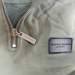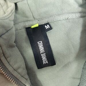 Criminal Damage Mens Medium Green Zip Hoodie Sweatshirt Long Sleeve Casual