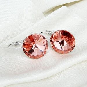 Crimson Austrian Crystal Real Platinum Plated Earrings . Fashion Earrings / Water Drop / Dangle / Vintage / Crystal