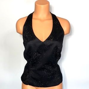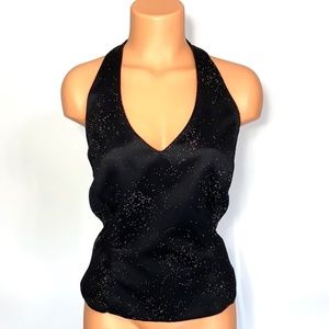 Crimson by Lawrence Kurtz Black Mesh Overlay Beaded Halter Top