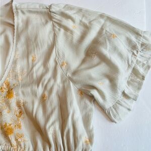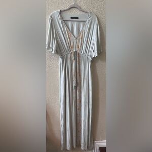 Crimson Maxi Dress Size XL Cream with Orange Floral Embroidery Flutter Sleeve