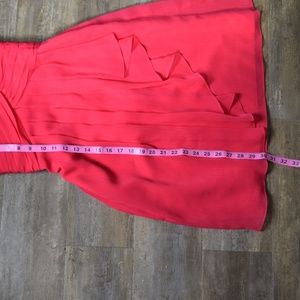 David's Bridal Crinkle Chiffon Dress with Cascade Detail in Punch Pink