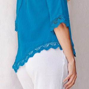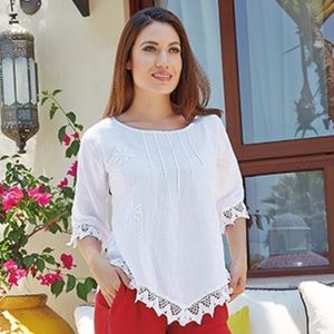 Crinkle Cotton Blouse, Hand embroidered Flowers.