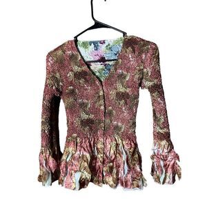 Crinkle Shrink Design Reversible Contrast Frayed Hem & Sleeves Cardigan Sweater. Great condition. No size or brand see measurements