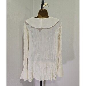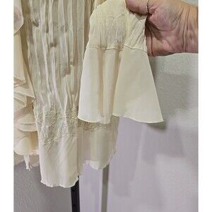 Crinkle Stretch Cream Blouse Womens 1X Plus Ruffle Fairy Boho Flare Bell Sleeve