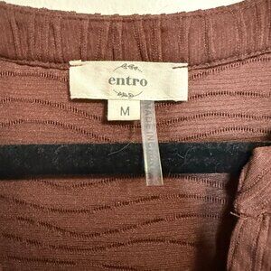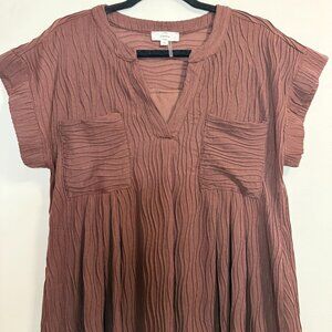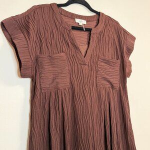 Crinkle Textured Brown Short Sleeve Dress Pockets Lined by Entro Size Women's M