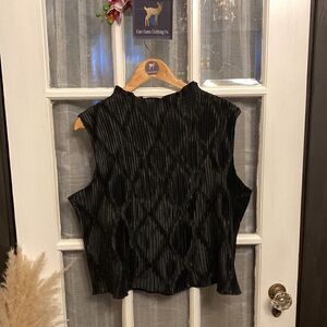 Crinkle Mock Neck Silky Crop Sleeveless Top