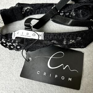 Cripom NWT Black Sexy Strappy Lace Bra and G String Set Size Large