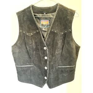 Cripple Creek Black Suede Leather Vest Snap Closure Western Pockets Womens Large