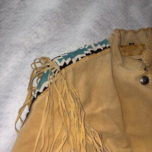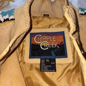Cripple Creek Leather Jacket Fringe Beaded Women's XL Brown Western Aztec Boho