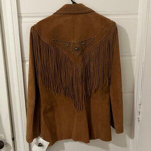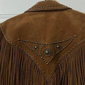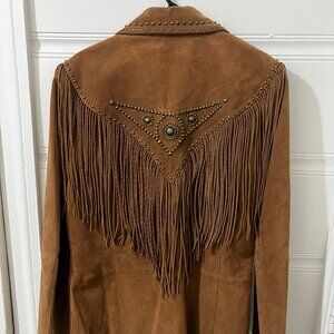 Featuring classic fringe detailing and metal stud accents, this jacket effortlessly blends rugged western charm with unique and polished details.