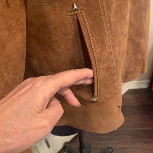 Real suede fringed jacket, excellent condition. Approximately 24" from pit to pit. Too snug for my 5' 11" frame.