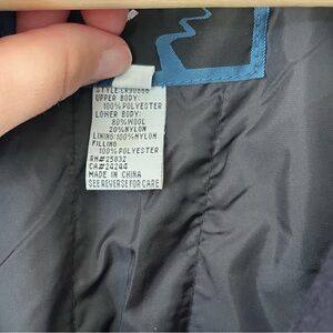 Upper 100% polyester, Lower body 80% wool, 20% nylon
