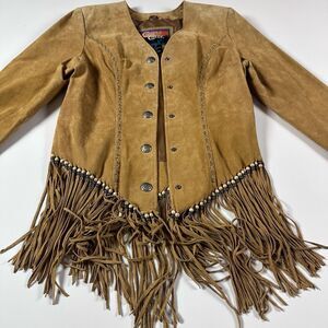 Cripple Creek Women's Brown Suede Leather Fringe Jacket Western Medium VTG