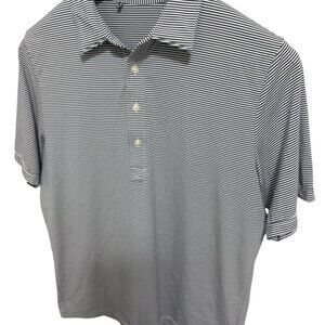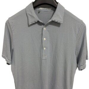 Criquet Polo Shirt Mens Large Blue Striped Polyest Stretch Short Sleeve Pullover
