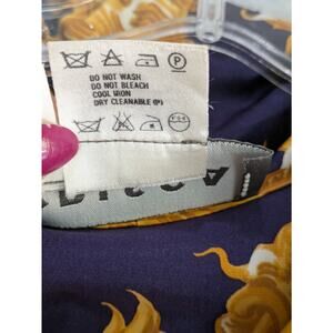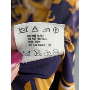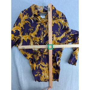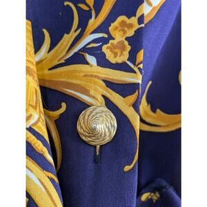 Crisca Tunic Blouse Womens 34 Baroque Print 100% Silk Long Sleeve Flowy Navy Gold