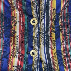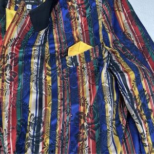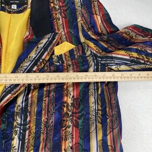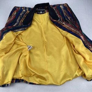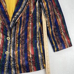 The jacket is perfect for any occasion, whether it's for travel, a party/cocktail event, casual or formal gatherings, or even for business meetings. Its striped pattern, multicolor design, and basic jacket style make it a versatile piece that can be dressed up or down. With its Bohemian, classic, retro, preppy, Western, and vintage themes, this jacket is a unique statement piece that will make anyone stand out.