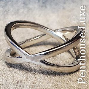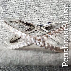 Sterling silver plated "X" band with micro-paved cubic zirconia crystals. Stamped 925.
