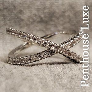 Criss Cross Cubic Zirconia Paved Silver Ring