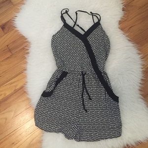 Very cute romper that can be worn casually or dressed up. Super cute criss cross adjustable straps and IT HAS POCKETS. The perfect summer romper. No flaws (: