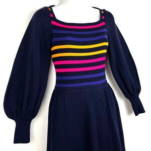 Crissa Linea Italiana 70s Maxi 100% Wool LS Dress Bohemian Vintage Womens