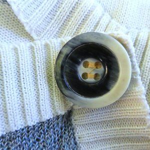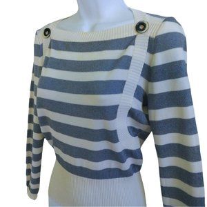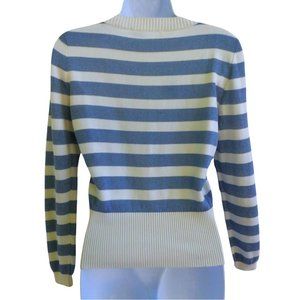 Crissa Linea Italiana Vintage 70s Wool Knit Sweater Top Blue Ivory Stripe Italy