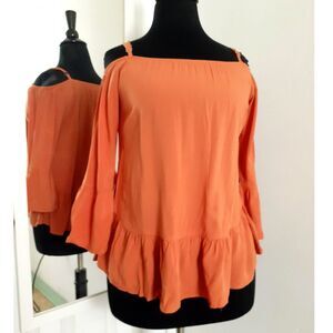 Crissa Off Shoulder Peplum Elastic Neckline Loose Fit Orange Blouse M
