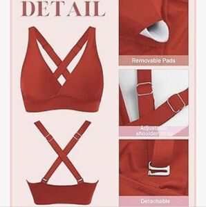Women's Sporty Adjustable Wide Straps Bikini Top Large Bust Criss Cross Back Supportive Swimsuit Tops Only Rust Red Large