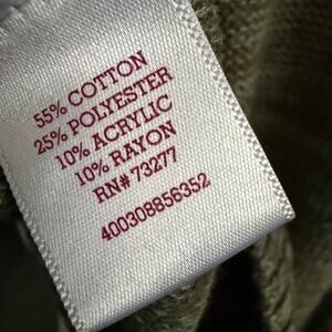 Cozy olive green crisscross V-neck sweater in a soft mid-weight knit. Features cross-front neckline detail, long sleeves, and ribbed trim — perfect for fall layering, chic casual looks, and everyday wear. No brand or size labels but sweater is in line with Maurices Medium tops.