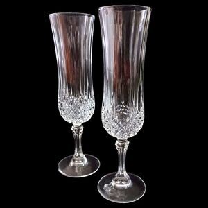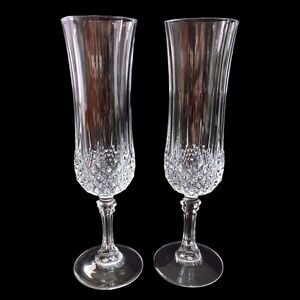 Cristal D Arques Longchamp Champagne Flutes Pair Diamax Crystal Clear France