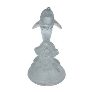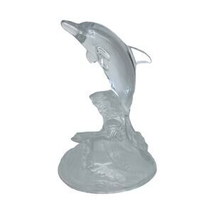 Vintage Crystal Jumping Dolphin, Cristal d’Arques, Made in France in 1993, Dolphin jumping waves. Measures approximately 6.25” H, base is 4.25” long diameter and 3.75” short diameter. 24% Lead Crystal.