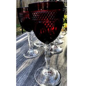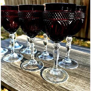 Cristal D'Arques Durand Antique Ruby Red Wine Glass/Goblet Vintage 70s-Set of 8