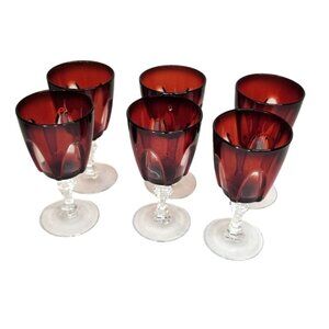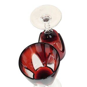 • Set of 6 wine glasses with ruby bowls and clear crystal stems