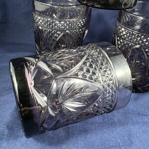 Cristal D'Arques Glasses Purple Amethyst Vintage Drink Handled Faceted Ornate