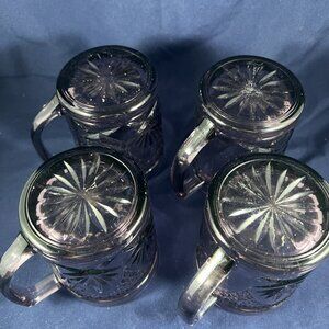 Discover this set of 4 Vintage Cristal D'Arques Purple Amethyst Glasses, featuring a stunning pressed glass pattern with intricate facets. These handled collectible pieces offer a decorative touch, perfect for adding a touch of vintage elegance to your drinkware collection or special occasions. Their rich amethyst hue brings a unique aesthetic to any setting.