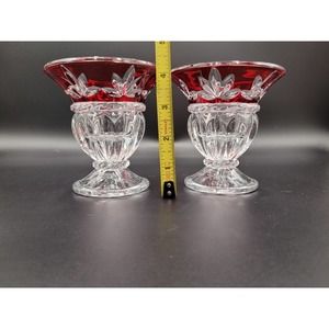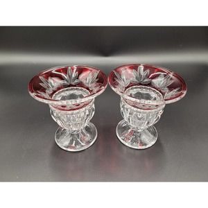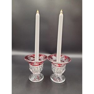 Cristal D'arques France Cut To Clear Candlesticks Ruby Red Crystal 2 Set.