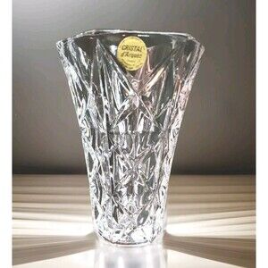 This beautiful 5" vase from Cristal d'Arque is a perfect addition to any collection. Made in France using genuine lead crystal with a star pattern, this vase features beautiful carvings and an etched 3D effect that makes it truly decorative. The glassmaking technique used in its production is fused glass, which ensures durability, and the vase has a glossy finish.