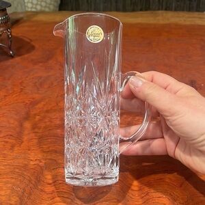 This is a beautiful Cristal d'Arques 16oz Crystal Pitcher. 7.25” tall and 2.75” accros the top. Beautiful hand cut crystal. Made in France.