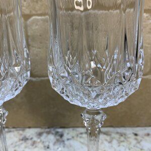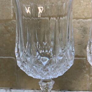 Set of 2 wine glasses 5.7 oz Longchamp by Cristal d'Arques is both elegant and refined. I have several sets, but selling as pairs for those who don't need a total of 8. Also have the larger water glasses available (see last picture for comparison - this posting is for the 2 smaller ones only). Excellent condition - fast and safe shipping!