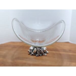 Murano clear Italian Art glass Centerpiece with a silver fruit motif base. Hand blown and Made In Italy.