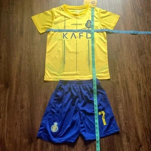 Cristano Ronaldo Al Nassr FC Soccer Jersey, Shorts Set 2023/24 Kids Home M NWT