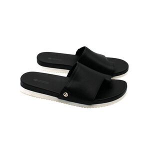 Cristeena Womens Faux Leather Embellished Slide Sandals